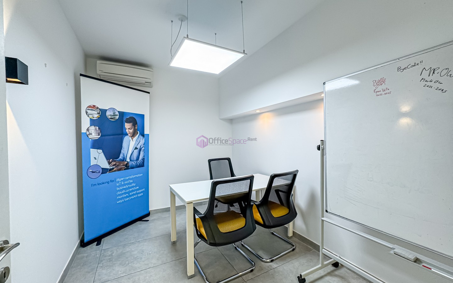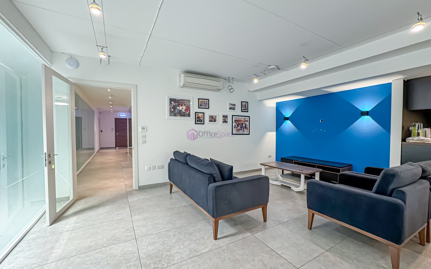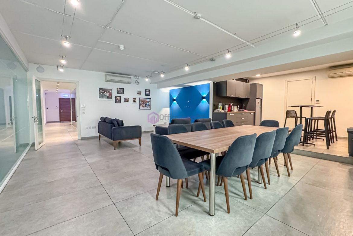 Business Centre Offices in Malta located in the central part of the Central Business District. An office measuring circa 250sqm on firs floor level. Being offered Tale Quale, in a finished and fully furnished state with all the M&E prepared for. Consisting of a reception/welcome space, large open plan area, Boardroom, 4 executive offices, lounge area with kitchen, storage and 2 bathrooms. Highly finished with air conditioning all throughout the premises. Optional 6 car spaces available in house at an extra charge of €900/year/space.