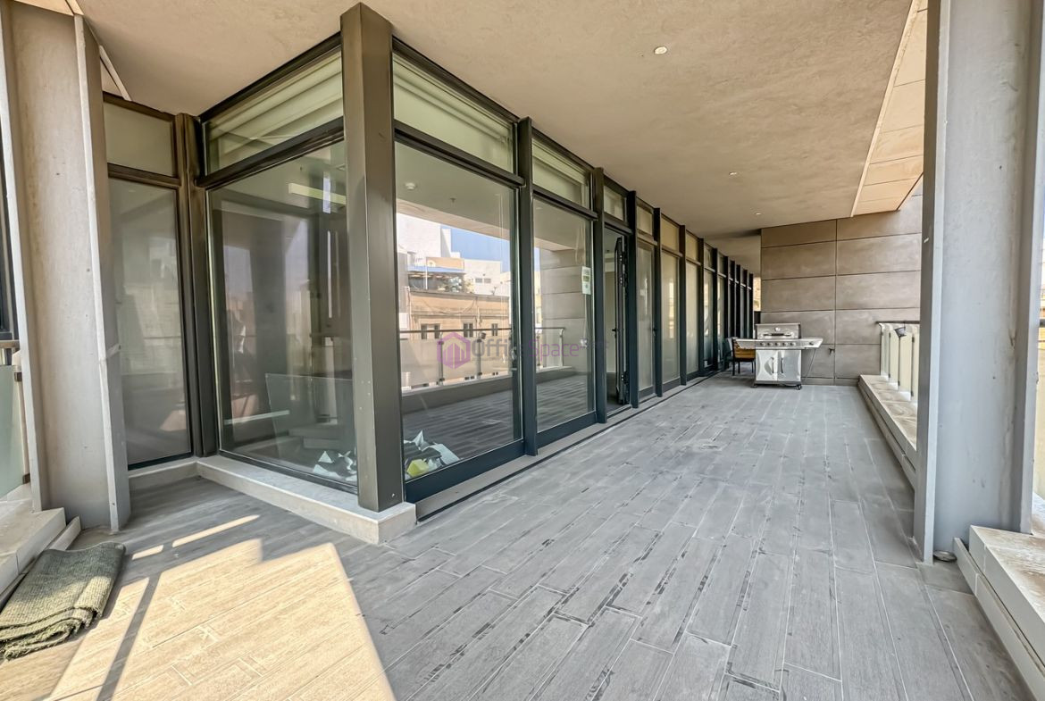 Business Tower Gzira Office Space on fourth floor level and measuring in total circa 275sqm internally and circa 40sqm terrace area. Set in a prestigious landmark high end business centre with reception services. Furthermore inhouse parking and 4 lifts accessing each and every floor. Consisting of a spacious open plan layout with one meeting rooms, kitchenette and 3 bathrooms as well as a server room. Enjoying good natural lighting with floor to ceiling glass windows all across the premises. Furthermore having a superb terrace area where your staff can socialize during events or lunch break. Located just off the promenade and close to all amenities as well as restaurants and cafes. Offered fully equipped including lighting, air conditioning and with raised flooring throughout. The business centre is fully equipped with dedicated Generator back up.