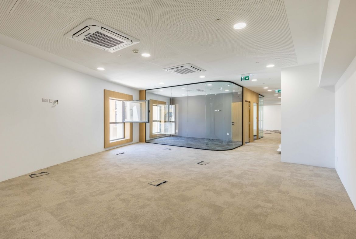 Classy Office Space in St Julians To Let located in a prime location in a business tower on the 2nd floor offered highly finished and brand new. Space measuring a total of circa 569sqm and currently split into 3 separate offices measuring 162sqm, 199sqm & 208sqm. Each office has an open plan space as well as meeting room and executive rooms. Also each having its own bathroom. Space for a server room is also available whilst bathrooms are shared within the 3 units. Offered finished with a raised flooring system, soffits, lighting as well as electricity, HVAC air conditioning and also a fire sprinkler system. Prime address and location in this area in a distinguished office block ideal to receive clients and leave a lasting impression.