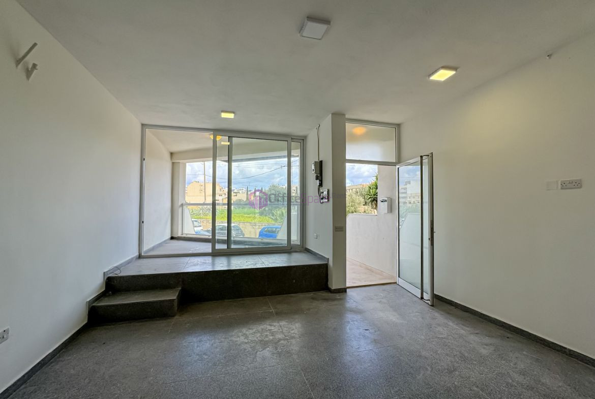 Modern Office in Mosta just off the main road measuring circa 95sqm internally and circa 12 sqm outdoor area. In the form of an elevated ground level marionette with its own private entrance situated seconds away from one of the main roads of Mosta. Consisting of an open plan space which is ideal for 5-7 work spaces, front terrace overlooking a green area, executive office leading onto a backyard, kitchenette and bathroom.