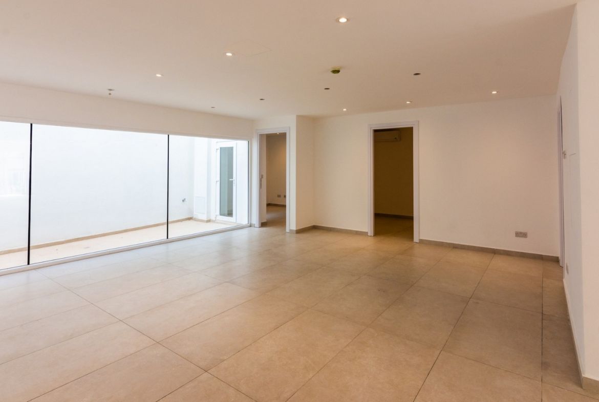 Commercial Space Swieqi To Let on elevated ground floor level and with frontage on a busy road. Measuring circa 120sqm and consists of an open plan space and 2 offices rooms. Offered fully air-conditioned (including the two offices / clinic rooms) and completely equipped including fire detection system, CCTV cameras, a roll-up electric shutter door and all data cables installed.