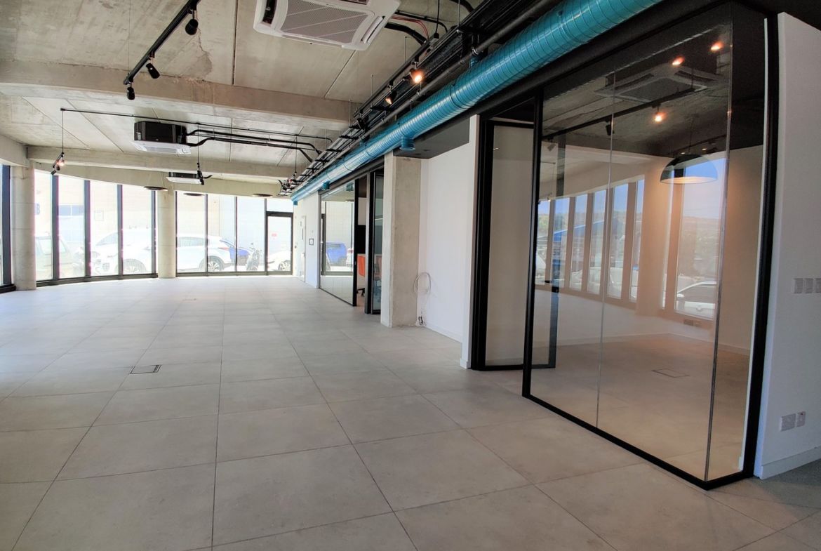 Duplex Highly Finished Office Space Malta to let in Burmarrad just off Naxxar. Brand new space on ground and first floor levels enjoying frontage and each measuring circa 200sqm. Each floor consisting of a large open plan space with space for a kitchenette, boardroom, 2 executive suites and 3 bathrooms. Offered fully finished and air-conditioned. Optional parking spaces to let.