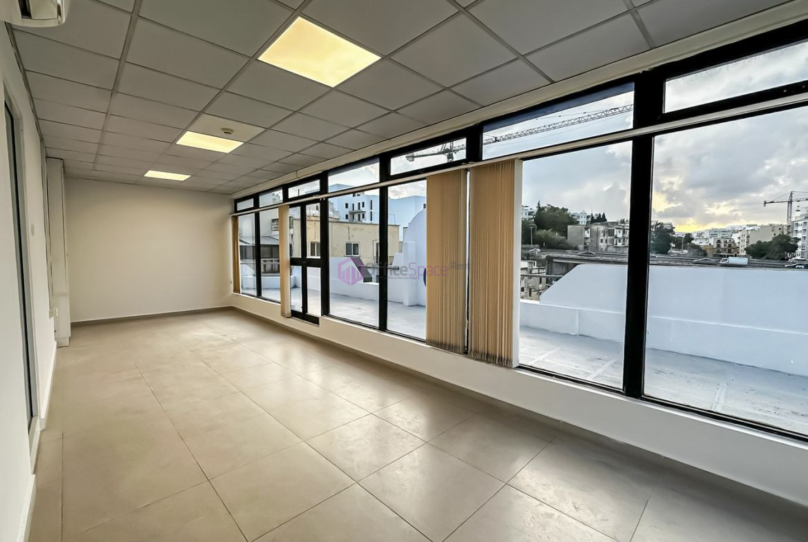 Duplex Offices To Let Ta Giorni set on a corner site enjoying an abundance of natural lighting. Consisting of crica 167 sqm of internal office space as well as circa 100sqm terrace area on penthouse level. Space on third floor level measuring a total of 320sqm, having 2 entrances on the landing and split into open plan as well as smaller sized offices. Equipped with a kitchenette, bathrooms, board rooms and an open plan areas. Ideal for any team with up to 35-60 workspaces. Set in a strategic location just off the main routes connecting north and south bound traffic. Comfortable location just off St Julians, with less then 10 minutes walking distance to Balluta. Furthermore with easy access to all amenities just a stone drop away in San Gwann. Good parking options in and around the area with the possibility to rent some reserved parking spaces as well.