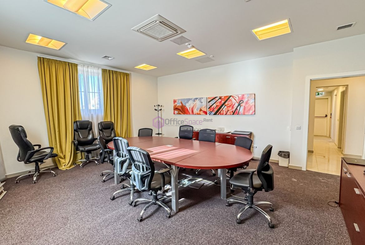 Floriana Office space set in a prestigious and historic building in Floriana. On fourth floor level and measuring circa 240sqm. Set in a modern business centre in the Heart of Floriana on a main road and walking distance to public transport. The offices are also walking distance away from the main capital of Malta Valletta. There are various office spaces available to let starting from 170 sqm upwards. The offices are finishing to a high standard and include fire alarm system throughout, safety lift and bathrooms. The offices block is equipped with a reception and security from 7am to 18:00pm. Offices are accessed through two main lifts and there is emergency exit on each floor. Each office space has open space area, a boardroom, two bathrooms, a kitchenette and some of them have an extra directors room. Common area costs over and above advertised rental rate.. Office block is also equipped with a backup generator. Big parking lot available very close by.