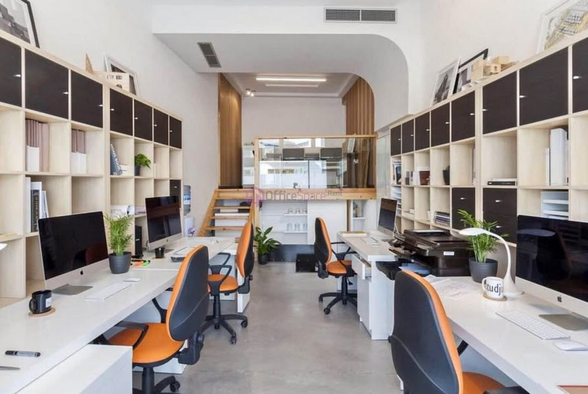 Designer finished and furnished Office in Balzan to let. Class 4A office in a finished state, with office furniture in good condition. Net internal areas are 32sqm including ground floor open plan with small custom designed kitchenette, WC and storage, plus a mezzanine level with a meeting area of 8sqm. Enjoying as well a 3m-deep front garden.