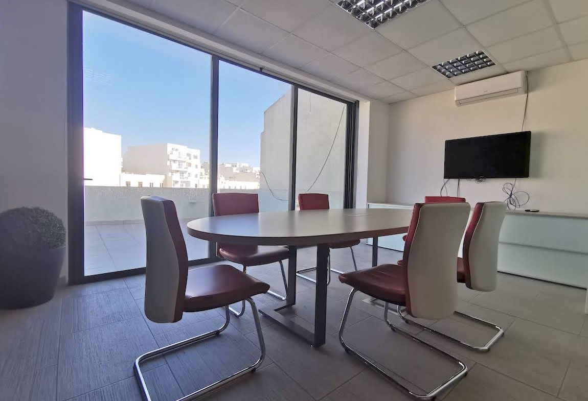 Furnished Penthouse Office To Let on 4th floor level in Gzira. Space measuring circa 135sqm internal and enjoying an abundance of natural light. Furthermore enjoys a spacious front terrace as well as a backyard for a further 40-50sqm external space. Upon entry on will find a spacious room (currently used as a boardroom) which is leading to the front terrace. Along the corridor than a utility room as well as a bathroom. An open plan workspace for around 8 desks, 2 executive offices and fully equipped kitchen with backyard. Ideal for up 10-12 desk spaces.
