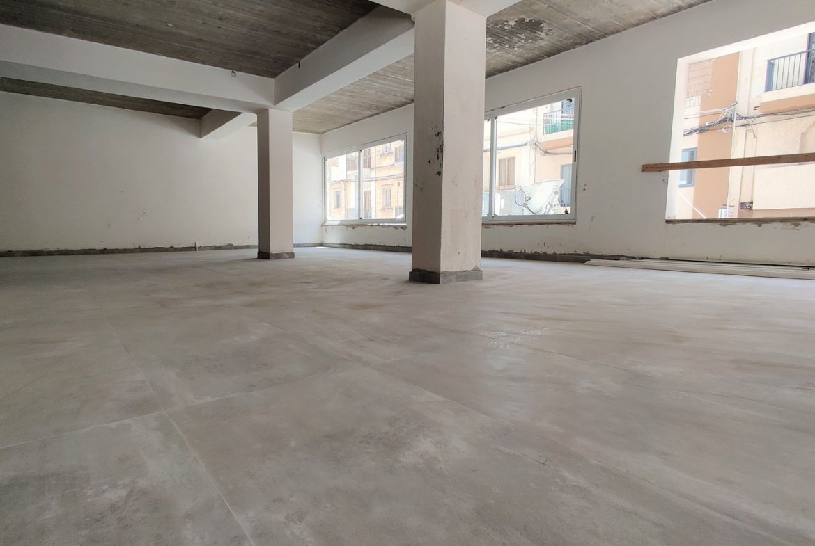 Gzira Office To Let measuring 312 sqm in open plan layout ideal for upto 25 – 30 workspaces. On street level and with frontage and private entrance. Ideal for office or retail use. Offered finished including lighting, electricity and air conditioning.