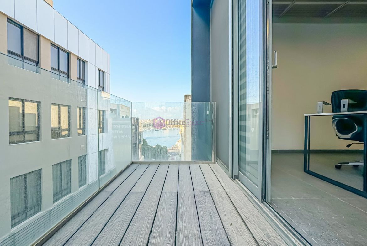 Highly Finished Sliema Office To let in a central part of town and in the midst of the commercial hub. on fouth floor level which is measuring a total of circa 80sqm and ideal for 5-9 work spaces. Also having access to a balcony with side sea views. Furniture is not included. Common area costs over and above advertised rental rate apply for the upkeep of the shared areas.