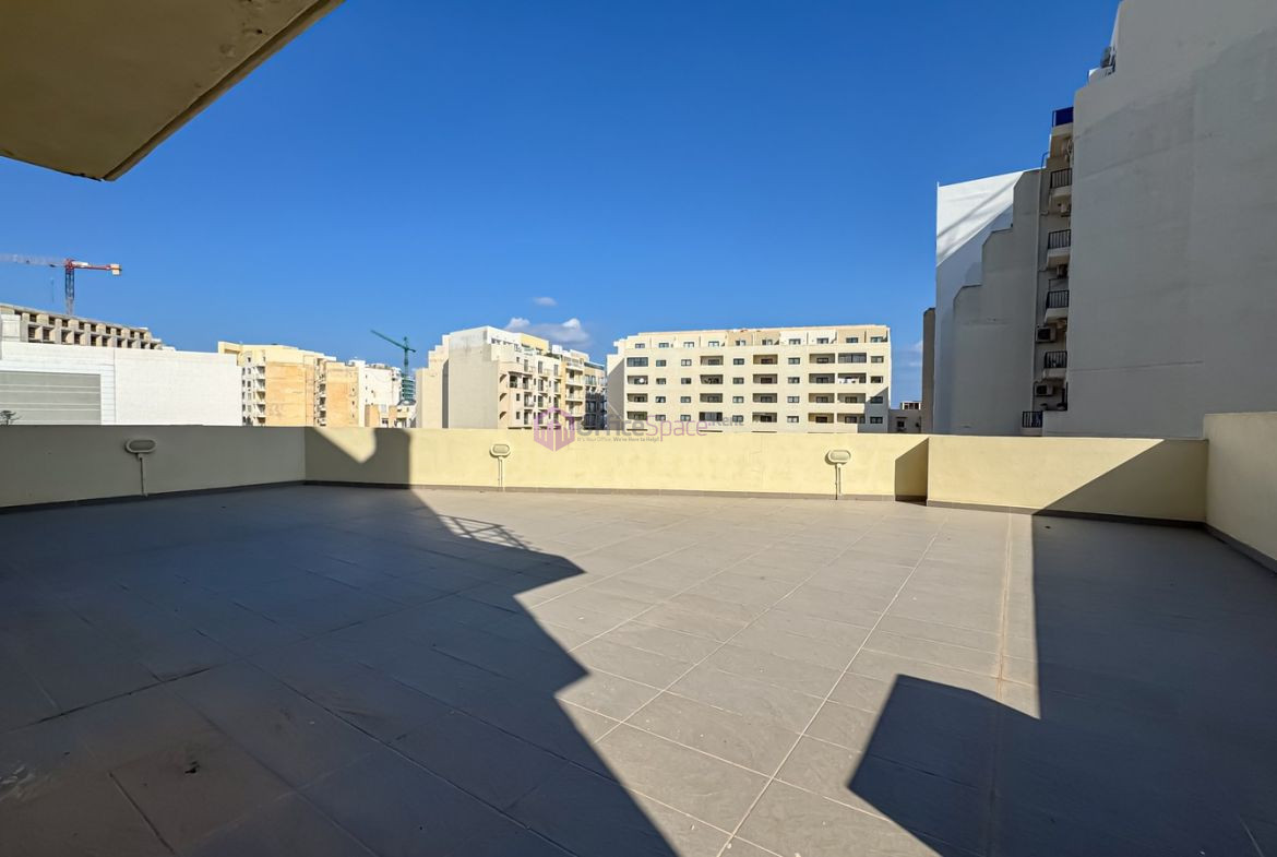 Large Open Plan Working Space Sliema. An opportunity to lease out an office in a recently refurbished office block in the most requested area in Sliema. An office space ideal for a company who needs a good address and a good location to operate from. Located on the first floor and measuring a total of 407sqm internally with two private entrances. The property enjoys natural sunlight all throughout the day especially because it includes also a massive terrace on the rear part of the office. This is ideal for entertaining and for company events. Optional parking spaces at an extra cost at a first come first serve basis and depending on availability. Ideal for any company looking to grow with a team of upto 30-50 work spaces.