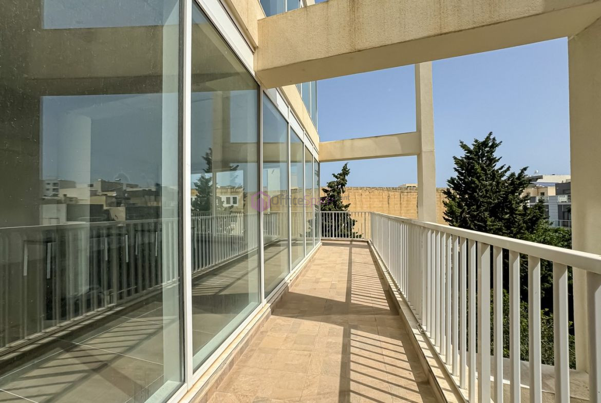Modern Bright Office Level 2 to let in St Venera limits of Mriehel Business District. Section of office space on second floor level (2a) measuring circa 82sqm net office area, with 22sqm terrace space and shared use of common waiting area & bathrooms. To be offered finished with air conditioning and lighting as per clients design of the space. Optional 3-4 parking spaces available at an extra cost. Ideal space for a team of up to 6-10 work spaces.