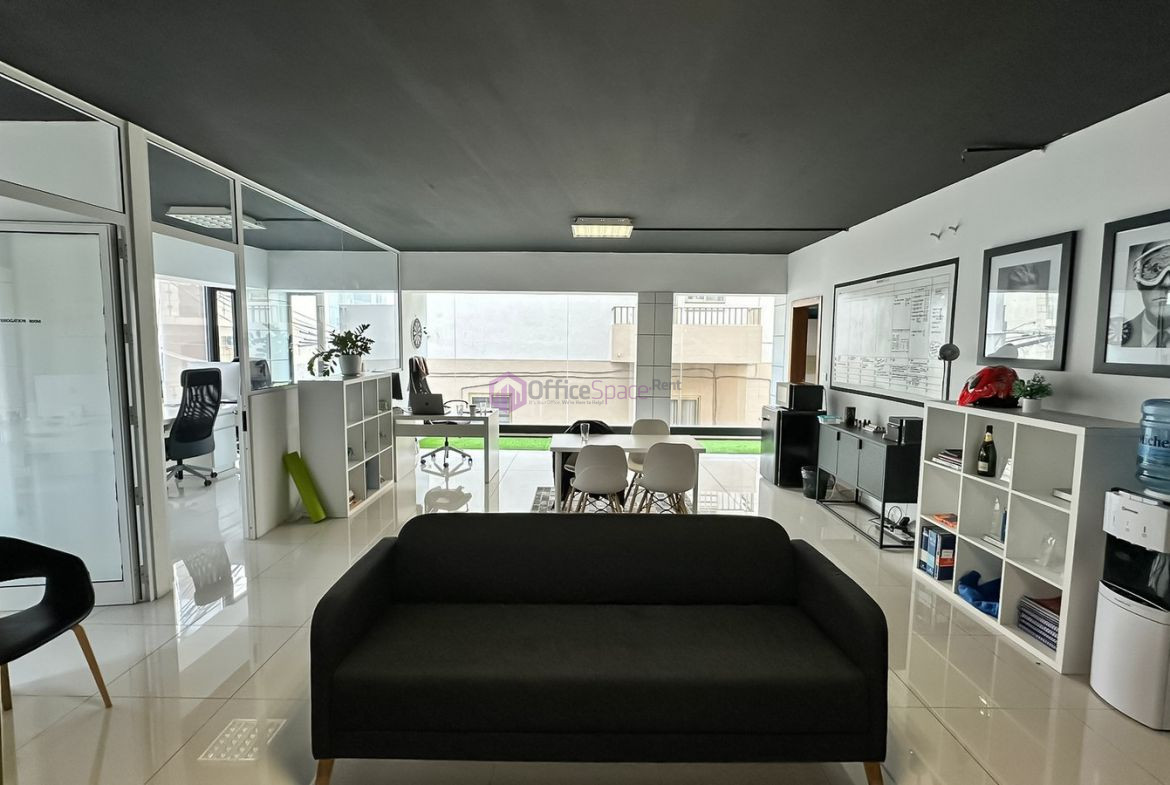 Modern Office in Mellieha measuring circa 64sqm on first floor level. Ideal for office use for a team of upto 6-8 work spacs. Consisting of an open-plan workspace area & 2 private offices. Enjoying large windows with natural light in a bright and airy atmosphere. Modern décor with black-and-white aesthetics and fully air conditioning. Kitchenette & storage space. Set in a great location amidst public transport, cafes, and essential business services.