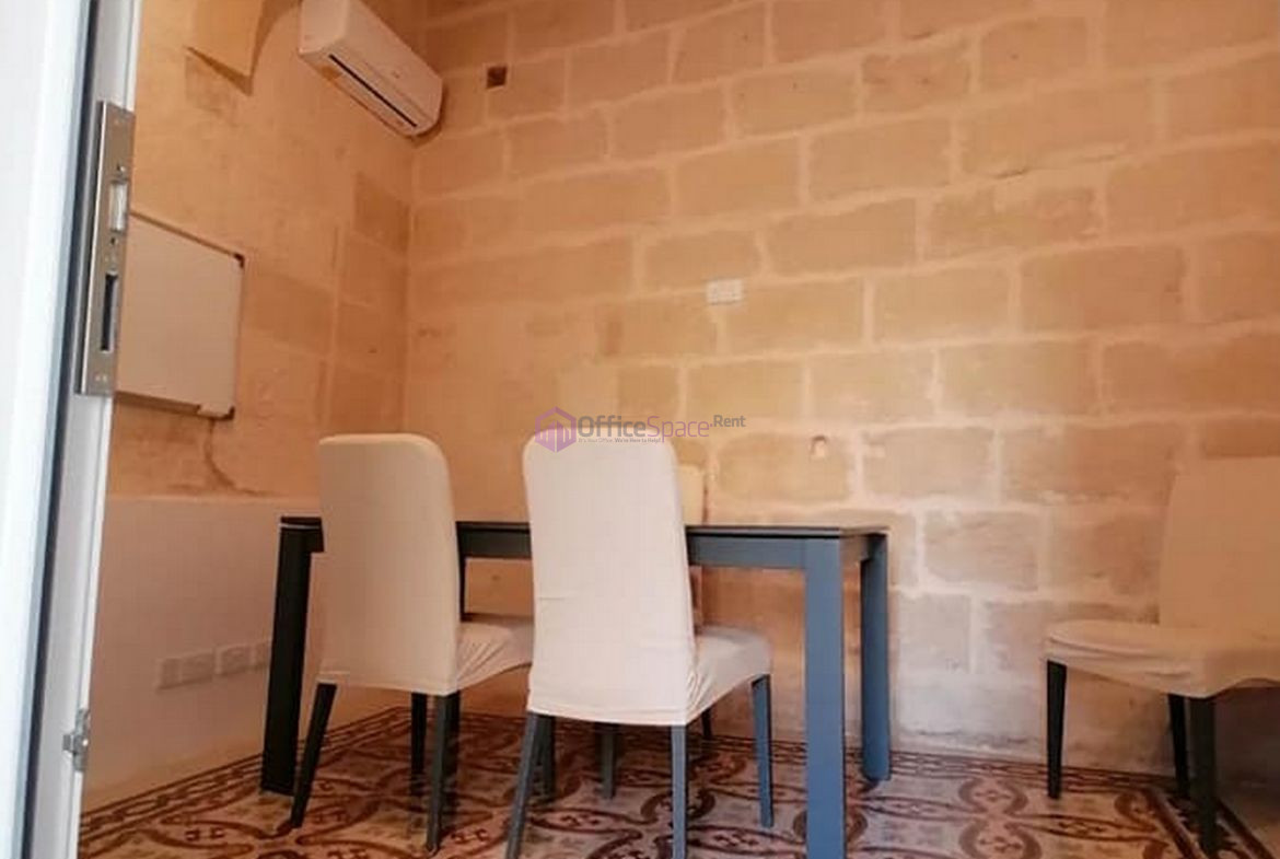 Mosta Small Commercial Space for rent centrally located. Boasting traditional original Maltese features and served with a private entrance from the street. Includes a waiting area, private bathroom, PVC double glazed doors for insulation and soundproofing. Finished with airconditioning and WIFI. Size: 13 sqm