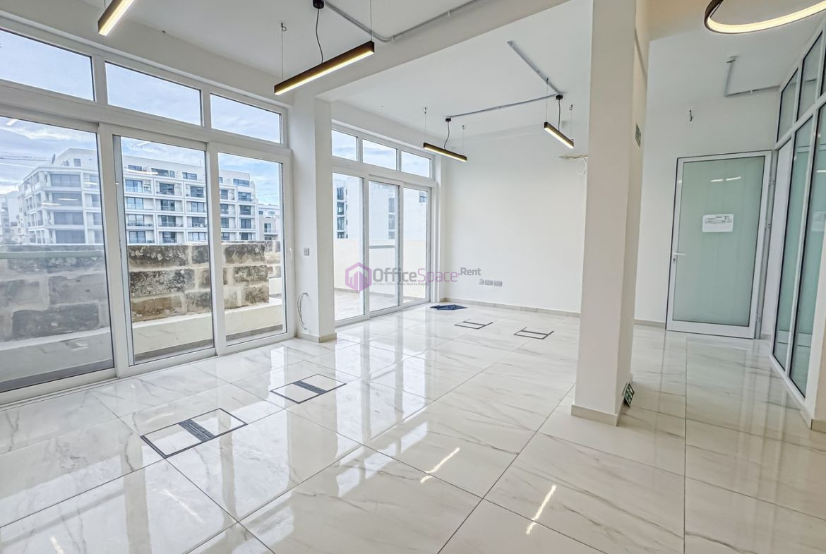 Msida Modern Office Space on second floor level and measuring 74sqm internally and a terrace of circa 11 sqm. Set in a building having three floors of offices with a quaint entrance area. Situated in a quiet cul-de-sac area which is very accessible and close to bus stops and amenities. The building enjoys old features such as the facade, the xorok and the staircase and now it has been modernly finished. Limits of ta xbiex.