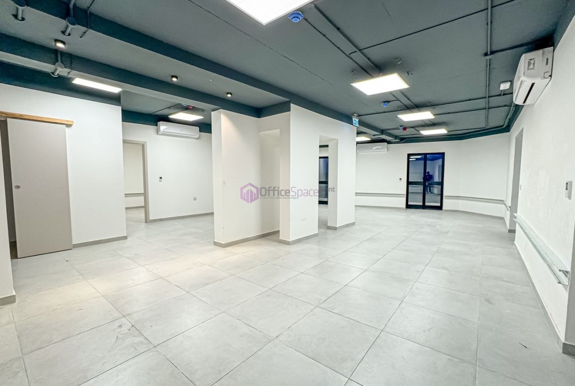 Office Space Kappara to Let limits of San Gwann. Located just off the main artery connecting North and South bound traffic which is also is just 5 mins from Sliema main area. Found also close to the main area of San Gwann and thus is easily accessible. Furthermore its close to all amenities and also close to Mater Dei Hospital as well as the University of Malta. On third floor level and measuring circa 100sqm enjoying well lit open plan office, 1 executive office, kitchen and bathrooms. Access also to 2 balconies. Offered finished ready to move into including lighting as well as air conditioning units, bathrooms apertures and more. Also available for sale.