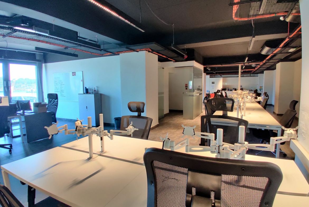 Office Space Sliema For Rent on the seafront and enjoying some nice views of Valletta and the harbour. Situated in a prominent location and within a profession business center on first floor level measuring circa 235sqm. An office which is served by two lifts as well as an emergency staircase. Consisting of 3 large open plan spaces with a large kitchenette and 3 bathrooms (one with shower). An ideal space for a team of between 18-38 workspaces. Recently refurbished to a high end finish and offered in an industrial ceiling finish, with strip lights and air conditioning all throughout the premises as well as glass curtain walls. The business center also offers a connection with a back-up generator for electricity continuity.