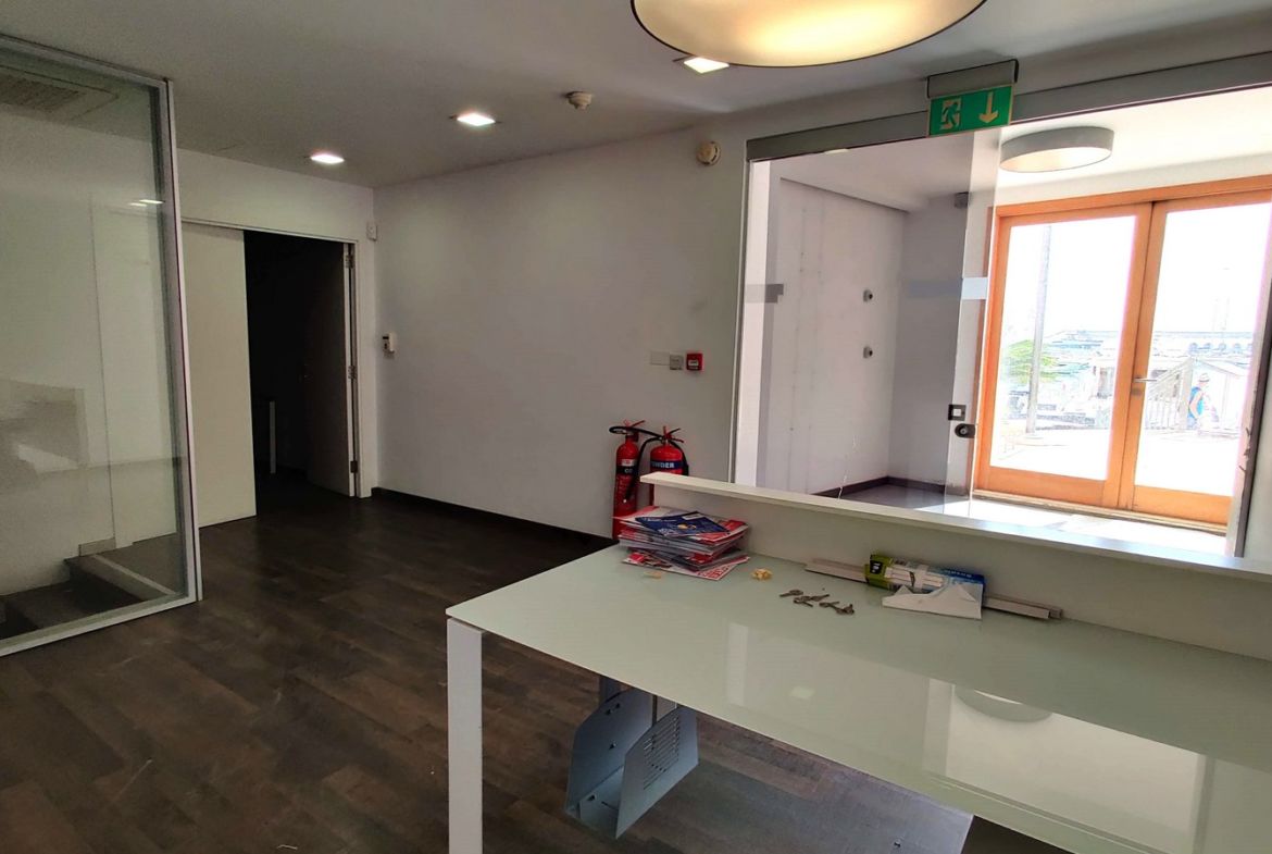 Office Space St Julians Portomaso measuring 584sqm. Having its own private entrance in this prominent landmark location overlooking the marina and seafront of St Julians. Consisting of a reception area and boardroom upon entrance and then a selection of small/medium and large sized offices. 2 kitchen areas, 6 bathrooms as well as a central courtyard. Can be opened up into an open plan space. Offered whitewashed, with lighting and airconditioning.