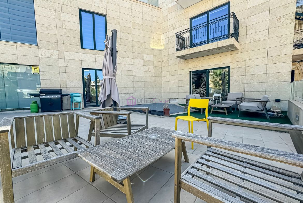 Open Plan St Julians Seafront Offices to Let in a highly sought after prime location enjoying some side sea views. An office set on second floor level and measuring a total of circa 650sqm of which, 610sqm internal area and 40sqm external terrace area. Consists of 3 large open plan areas housing upto 70 work spaces, 2 executive offices, 3 different sized meeting rooms as well as a large kitchen lounge area. Furthermore enjoying a nice reception area, a good number of bathrooms, server area and storage rooms. Situated in a prominent location in a business center consisting of 6 floors covering a total of around 2,600sqm of office space.