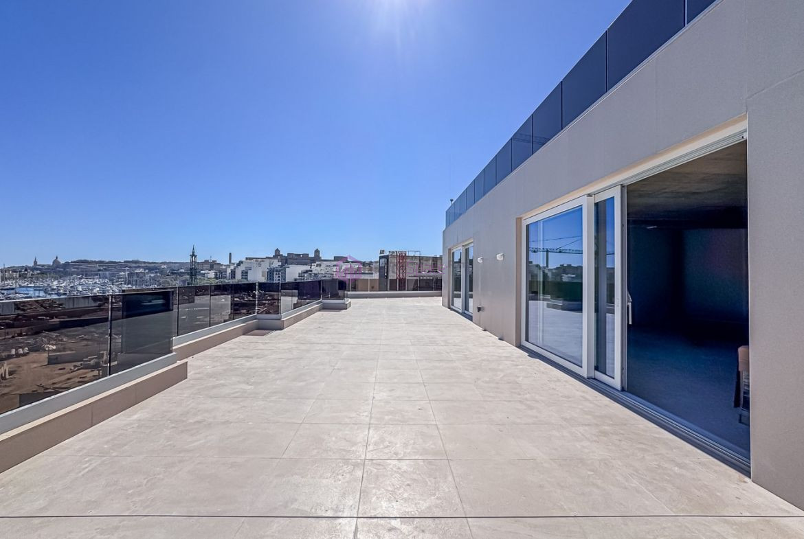 Total Area: 304 sqm | Estimated Desk Spaces: 20–35. Fantastic opportunity to rent a penthouse office in Msida set in a high end prestigous office block. Enjoying 304sqm internally and a large 100sqm terrace area. Furthermore with great natural lighting as well as distant sea views. Set in a high class HQ Business centre in a central part of the island with fantastic views and great accessibility. Set on sixth floor level from ground, accessible from the common areas. Full floor plate ideal for a large team looking for a space to grow.