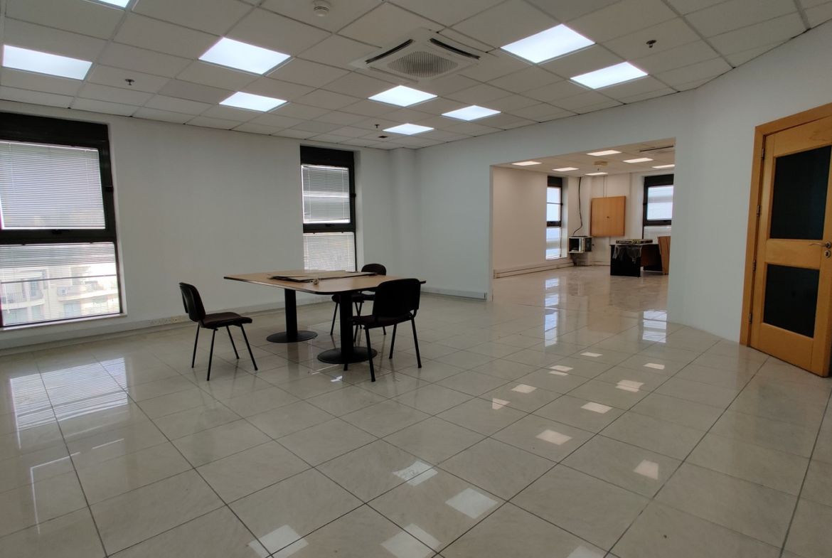 Prime Office Space To Let. Office space for lease in one of Malta’s landmark locations in St Julians. This is a prominent building, and the office consists of around 92 sqm of office space with large windows and a lot of natural light on level 5. Fully air-conditioned and equipped with networking points. Block also has shared bathroom facilities and has lift access. Optional car spaces can be rented in a big parking lot nearby. Ideal for a high profile start-up, looking to be situated in the main business area of St Julians.
