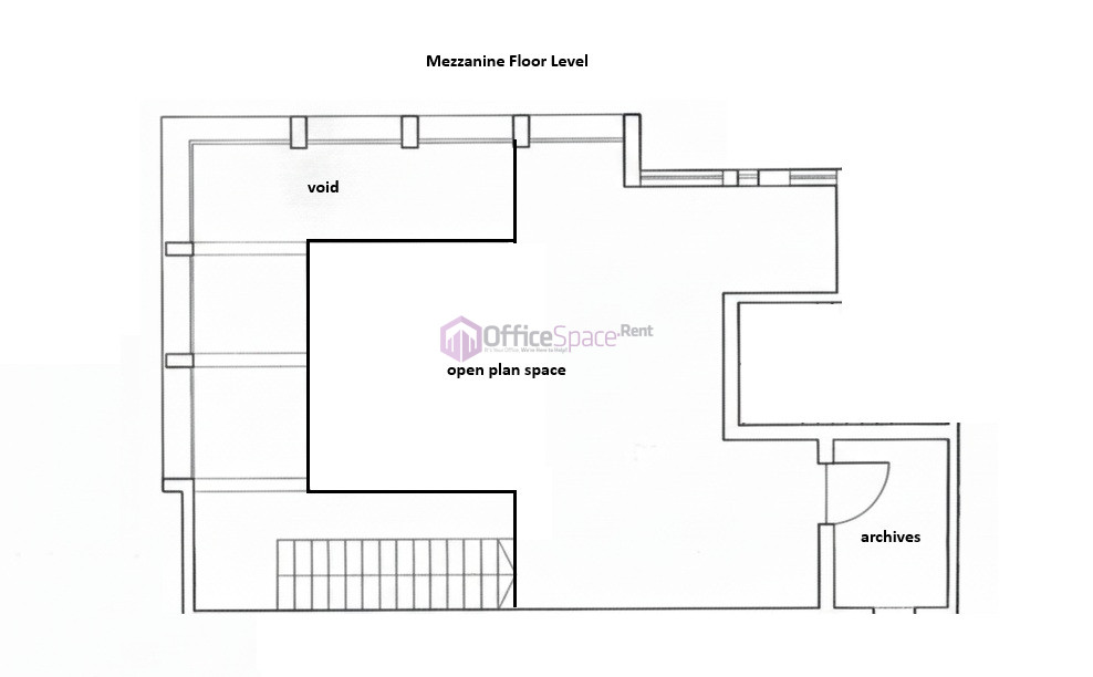 The mezzanine level offers a second open-plan space, ideal for additional desks or team collaboration. A further enclosed office on this level provides privacy for focused work or confidential discussions. This vertical separation improves workflow and helps teams operate more efficiently.