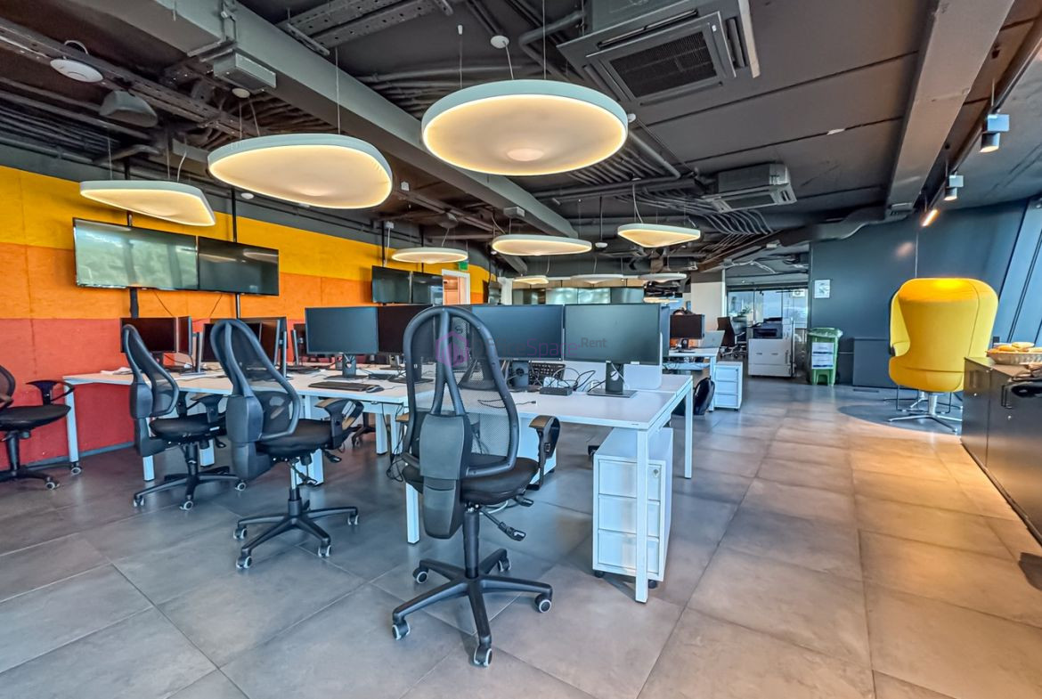 Prominent First Floor Office in St Julians To Let in a marvelous location enjoying panoramic views. An office floor measuring circa 410sqm internally and circa 35sqm terrace space. Offered highly finished in an open plan state, 2 spacious office/meeting rooms, kitchen and lounge area as well as two bathrooms. Situated in a high end building enjoying panoramic sea views and in a prominent location. Building served with lift access, back up power connectivity and more.