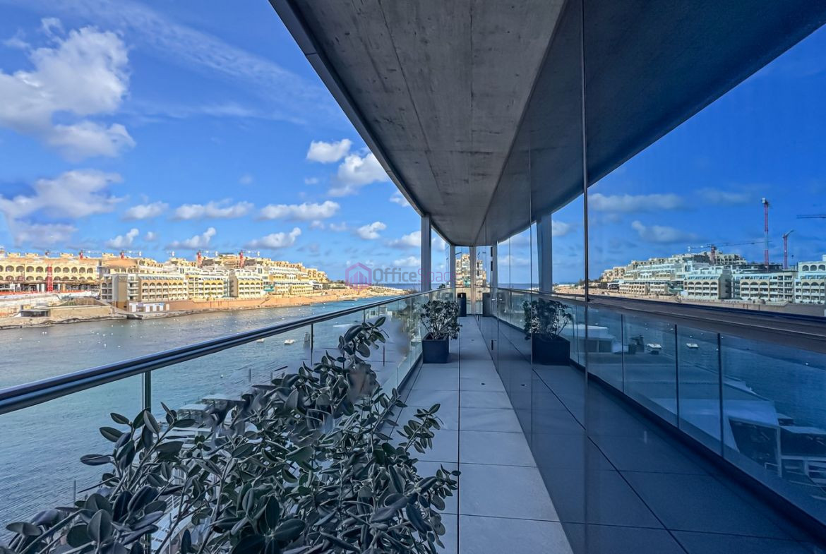 Prominent Highly Finished St Julians Office To Let in a marvelous location enjoying panoramic views. On third floor level and measuring circa 530sqm internally with a 30sqm balcony. Consisting of large open plan spaces, executive rooms, 2 meeting rooms and a lounge area with kitchenette. Currently housing a team of upto 73 workspaces. Offered fully finished ready to move into. Furniture is also optionally for sale from the current tenants. Optional parking spaces available at an extra charge subject to availability.