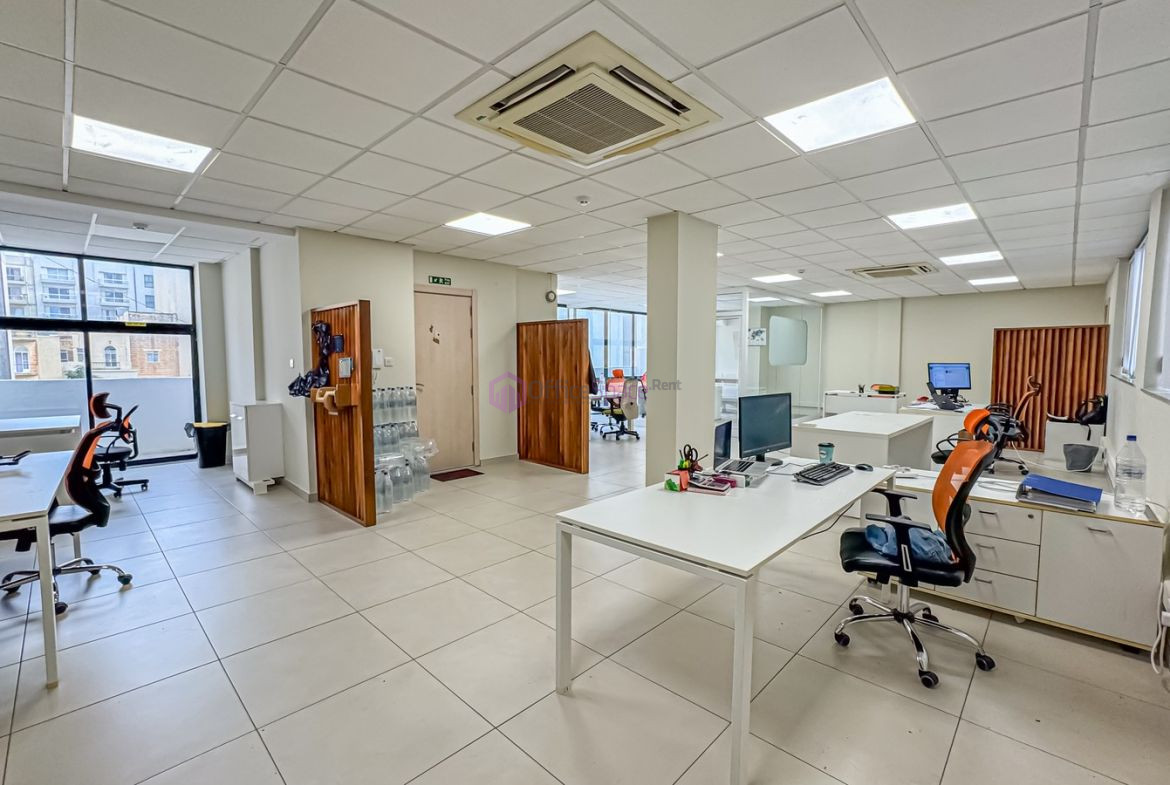Rent Designer Office in Sliema. 6th floor office space in the commercial centre of Sliema. The office is recently refurbished to very high standards and has lift access. Consists of circa 110sqm of office space with an open plan space, one boardroom, 2 additional spaces for boardroom/executive rooms, kitchen and 1 bathroom. Access to circa 10sqm balcony across the front part of the office. Office has soffit ceilings with air conditioning all throughout the premises. Very well lit since it has light coming from both ends of the premises. Close to all amenities and public transport. Offered in semi-furnished ready to move into. Ideal space for a team of between 6-12 work spaces.