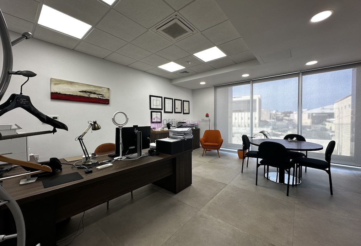Rent Office Business Centre Mriehel. The office space measures 190 square meters and comprises of a reception area, board, 3 good-sized separate offices, a kitchenette, and 2 bathrooms. The office is ideal for 15 to 18 persons.