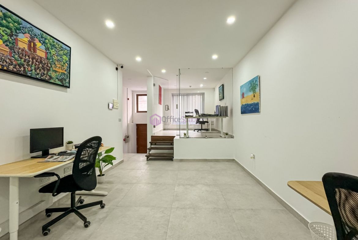Rent St Julians Office Space. An elevated ground floor commercial property with class 4 permits for office use. Enjoying it’s own private entrance. Measuring circa 85 square meters and consisting of an executive room, boardroom and a small open space. Ideal office for company with 4-8 work space and great office for start-ups. Highly finished and equipped with CCTV, alarm as well as a fire alarm. Includes also a bathroom and small kitchenette. Offered unfurnished.