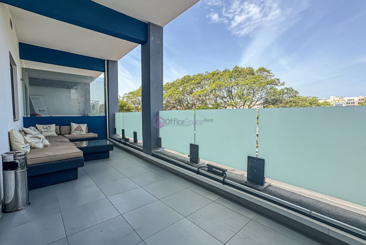 Seafront Business Centre Office To Let on first floor level measuring circa 156sqm internally plus front balcony. Located in this exquisite location on the seafront enjoying panoramic views of the yacht marina as well as the nice gardens in the area. High class offices ideal for companies looking to fit 5-12 employees with good spacing. Consists of open plan area, boardroom, 3 executive rooms, two bathrooms and a kitchen area. Nicely finished and fully air conditioned premises. The office block in Pieta has luxuriously finished entrance which is ideal if one receives clients at their offices. Public transport access is just available opposite this building. Parking in the area is quite reasonable. One can enjoy a nice terrace area for lunch break or for smokers.
