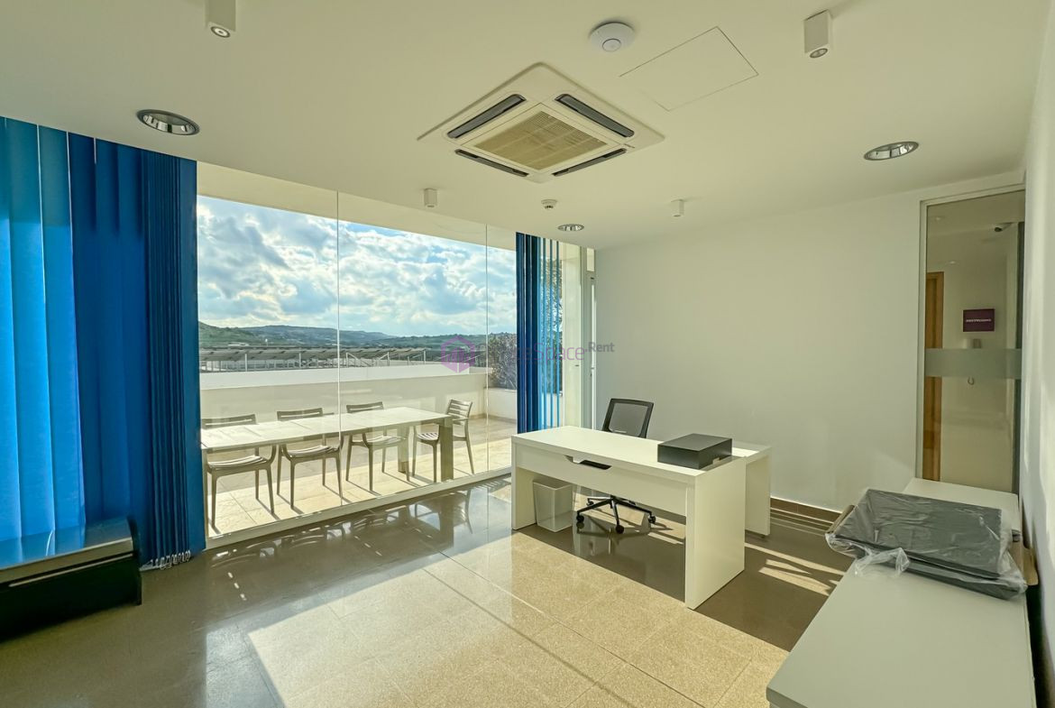 Serviced Office in Burmarrad to let within a spacious 150sqm space enjoying access to a large terrace as well as artistically designed common areas. Space consisting of 1 spacious room measuring circa 18sqm for upto 3 desk spaces. Having access to shared amenities such as reception area, bathrooms, kitchen area as well as the large terrace. Offered furnished and ready to move into. Optional parking spaces available within the block subject to availability.