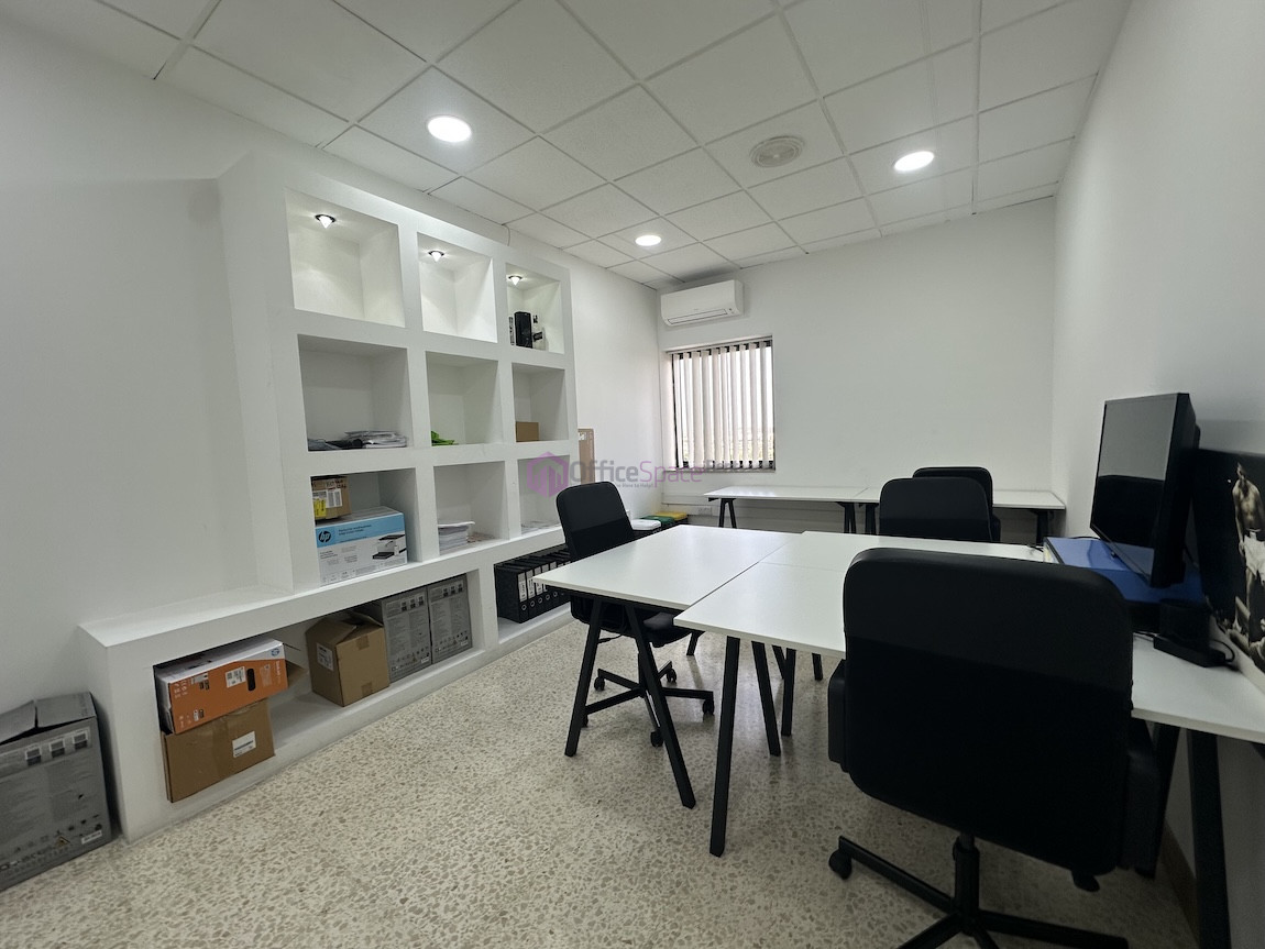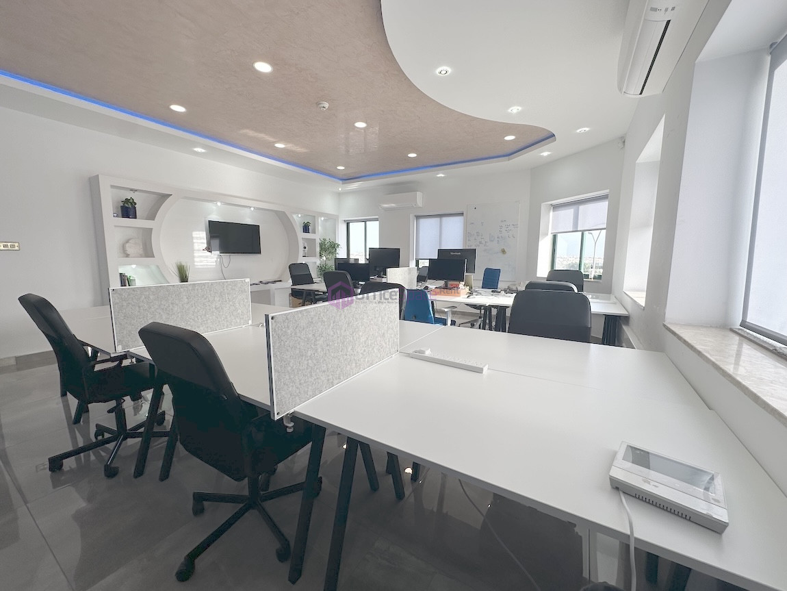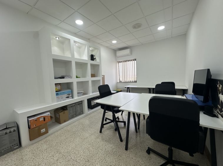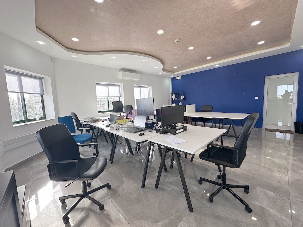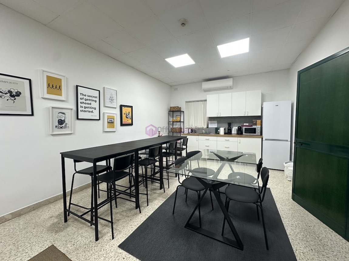 Zebbug Furnished Office For Rent . The office is situated on the first floor and comprises an open-plan area for around 10 people, three lockable offices, a bathroom, and a spacious kitchen. It is ideal for approximately 25 employees.