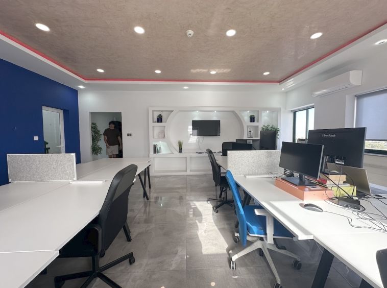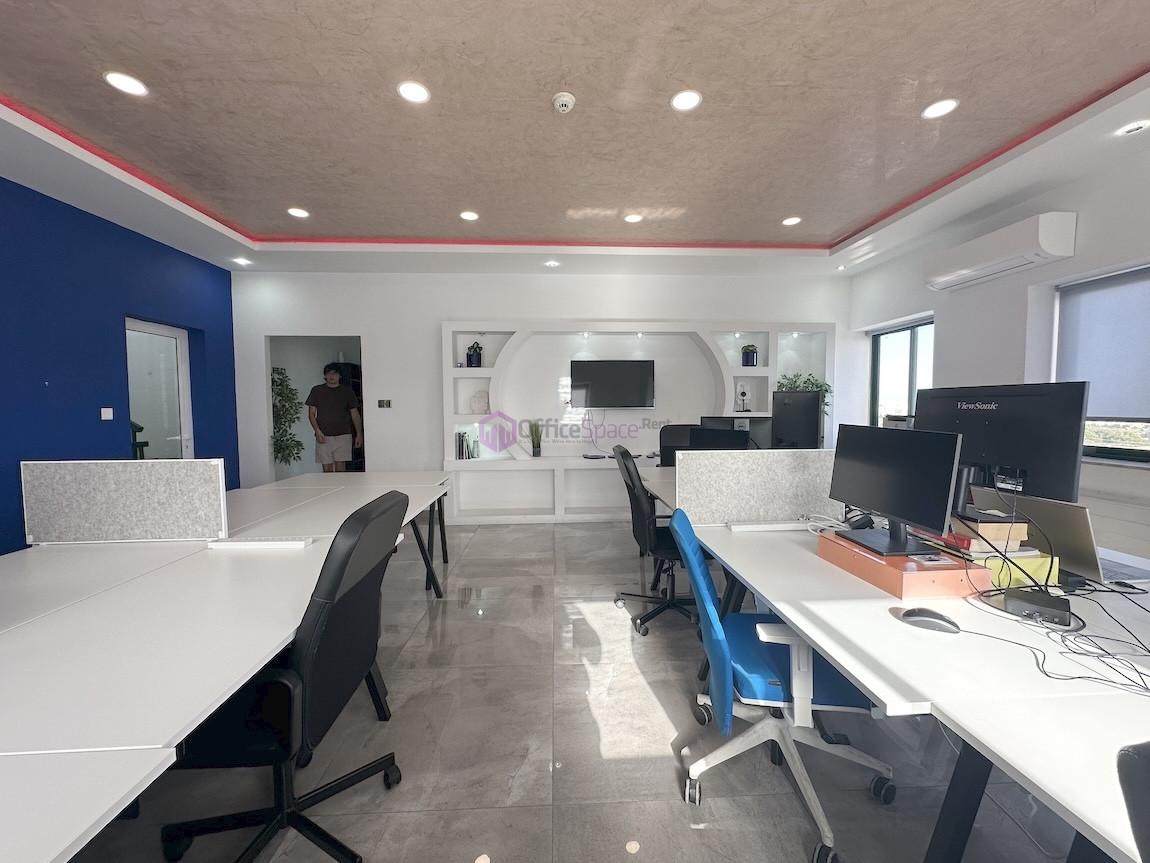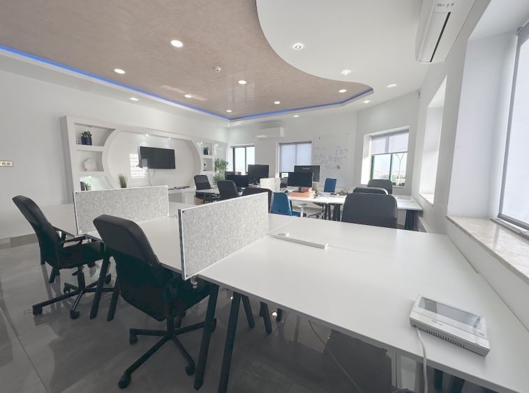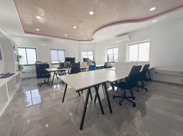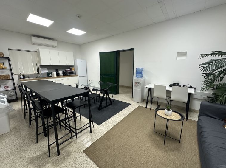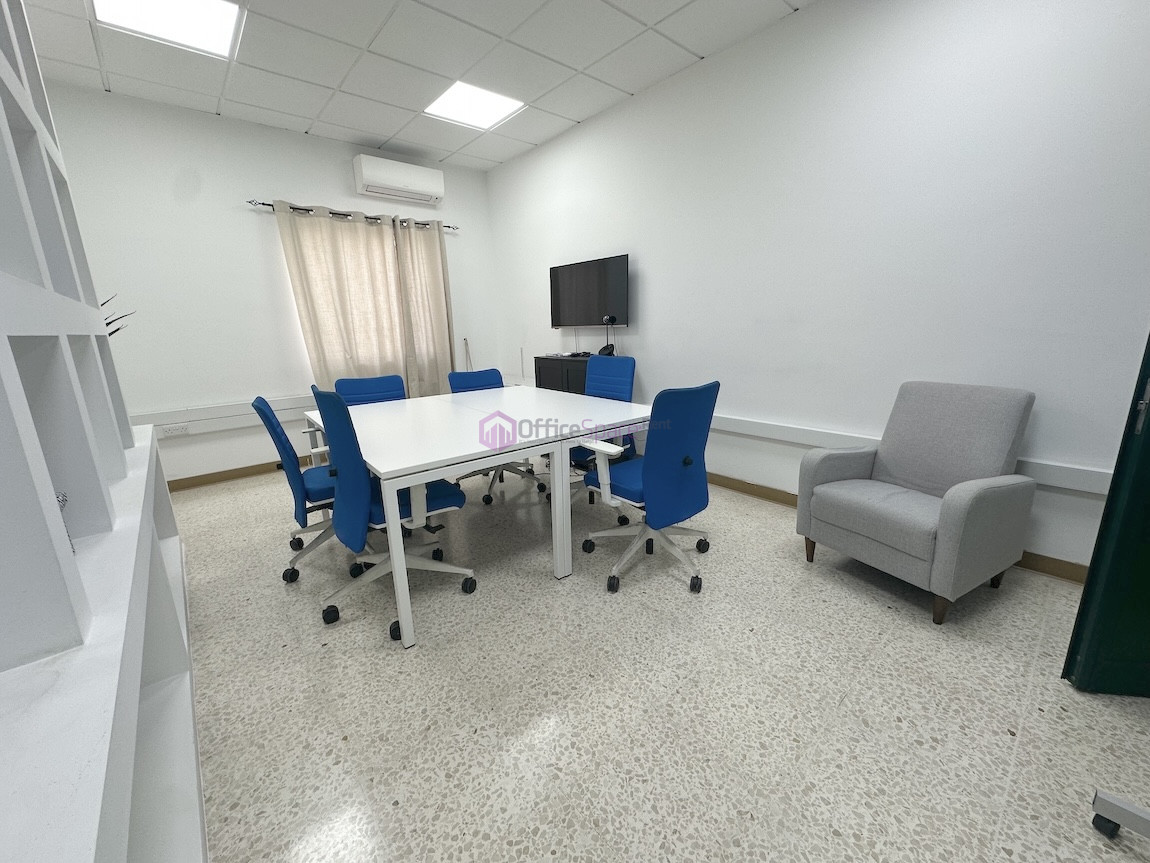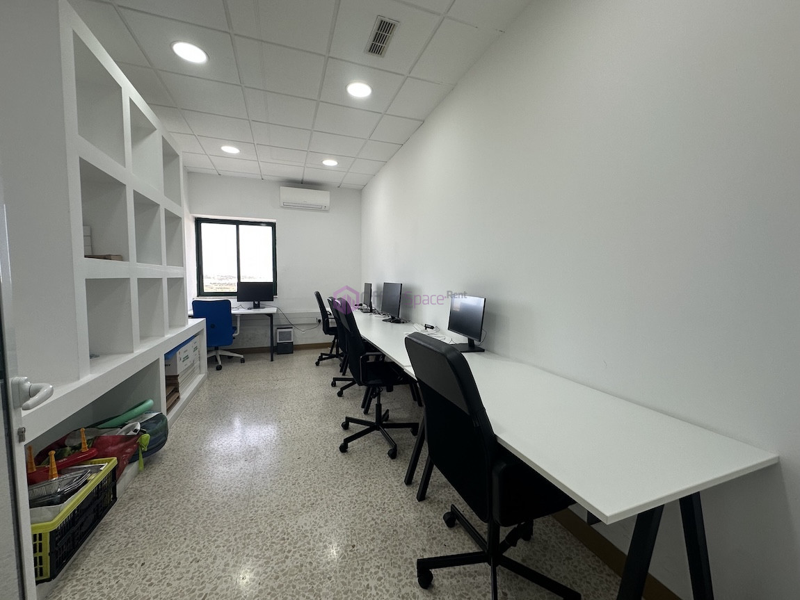 Zebbug Furnished Office For Rent . The office is situated on the first floor and comprises an open-plan area for around 10 people, three lockable offices, a bathroom, and a spacious kitchen. It is ideal for approximately 25 employees.